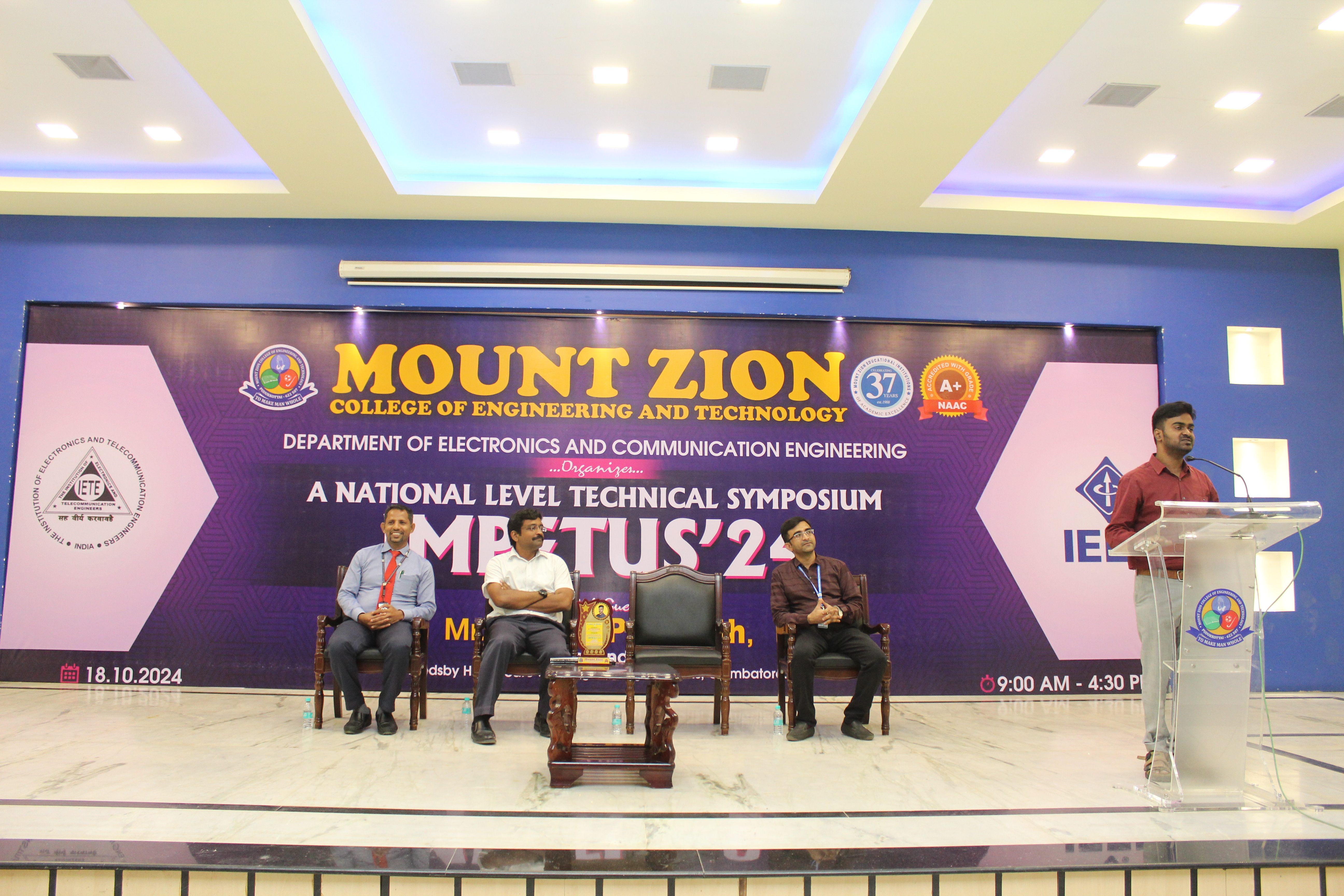 | 9 | 15.09.2023 | Engineer's Day | All Department students | 150 | IETE and IEEE Student Forum | Mrs.G.Senthamil Selvi, AP/ECE Mr. R. Aunkumar, AP/ECE ,Mount Zion College of Engineering and Technology |